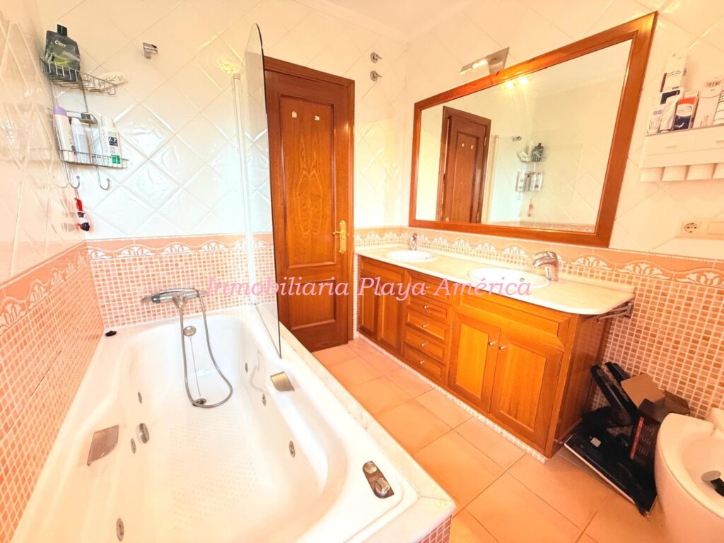 Playa América. Pareado en una urbanización, en esquina con el mejor jardín para disfrutar. Estupenda zona residencial.